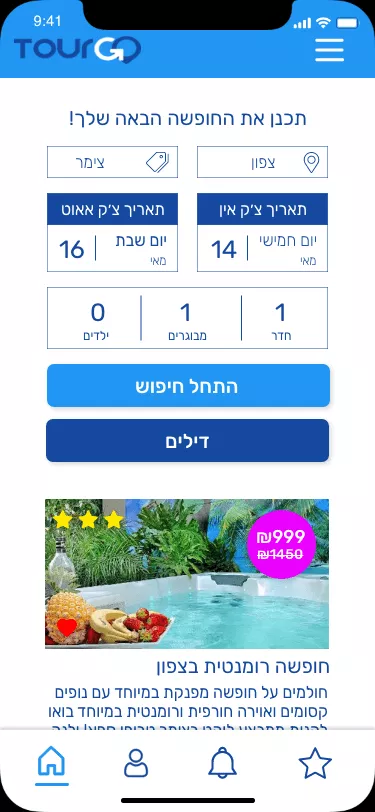 TourGo is a mobile application in the field of tourism used to book entertainment/accommodation.