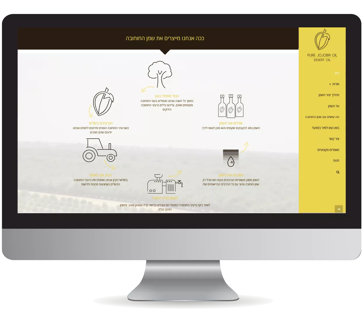 Desert Oil is a company that creates and produces jojoba oil. As part of the project, the company was rebranded, the project included the creation of a graphic language and advertising products for print and digital. Design and development of a WordPress site according to the needs of the company.